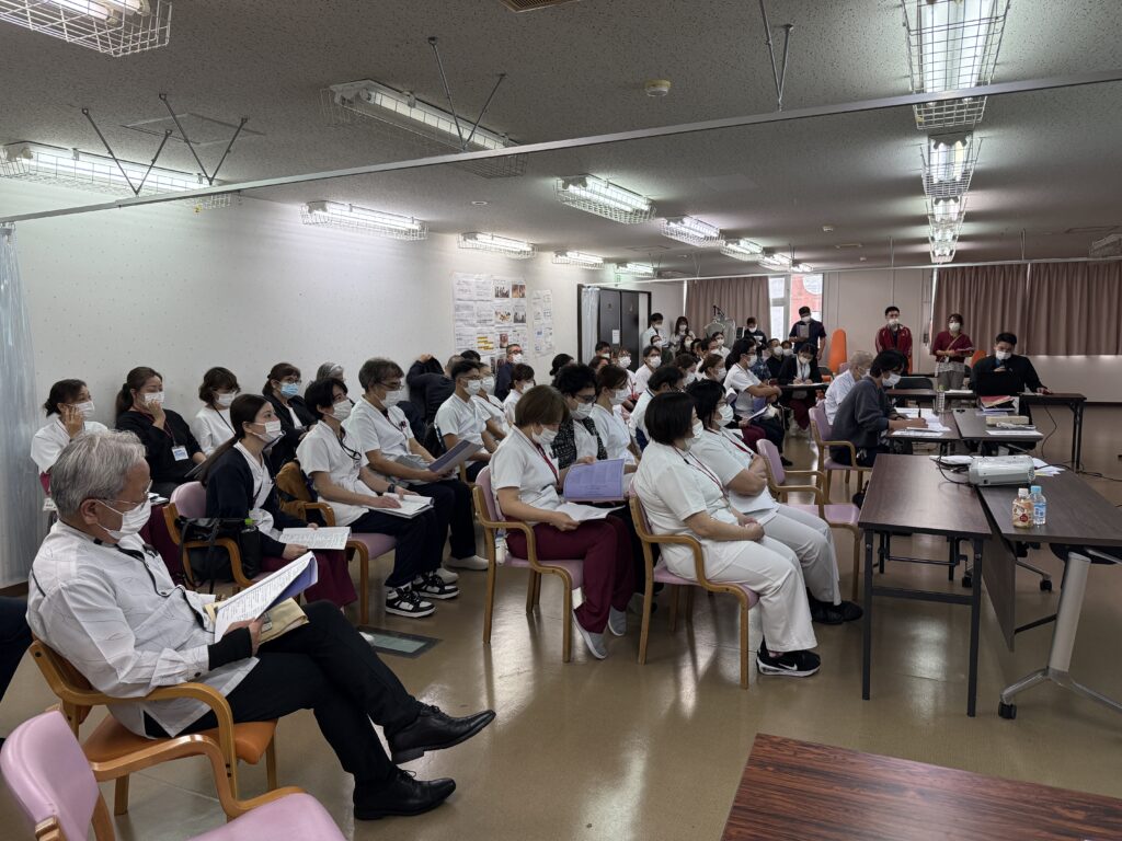 医療法人陽心会グループの「第5回 研究発表大会」を、12月24日に那覇市のメディカルプラザ大道中央病院で開催しました。コロナ禍を経て6年ぶりの開催となる発表会には、グループ内の12チームが参加。5人の審査員が見守る中、参加チームは業務改善事例、職員を対象としたアンケート結果の分析、衛生用品の比較検討、災害時の計画書策定、治療や自立支援に向けた取り組みの経過報告などを発表しました。司会を務めた大道中央病院リハビリテーション部の上川真吾部長は「新型コロナの発生以降、職場内の横のつながりが希薄になる傾向にあった。今回の発表会を通して知識や経験の共有のみならず、職種や部署を越えた交流のきっかけづくりにもなった」とコメント。審査結果はその後に開かれたグループ合同忘年会の席上で発表され、最優秀賞を獲得した大道中央病院4階病棟PT/OT/MDチームには賞金10万円が贈られました。 研究発表大会にはグループ内の12チームが参加 他チームの発表を共有